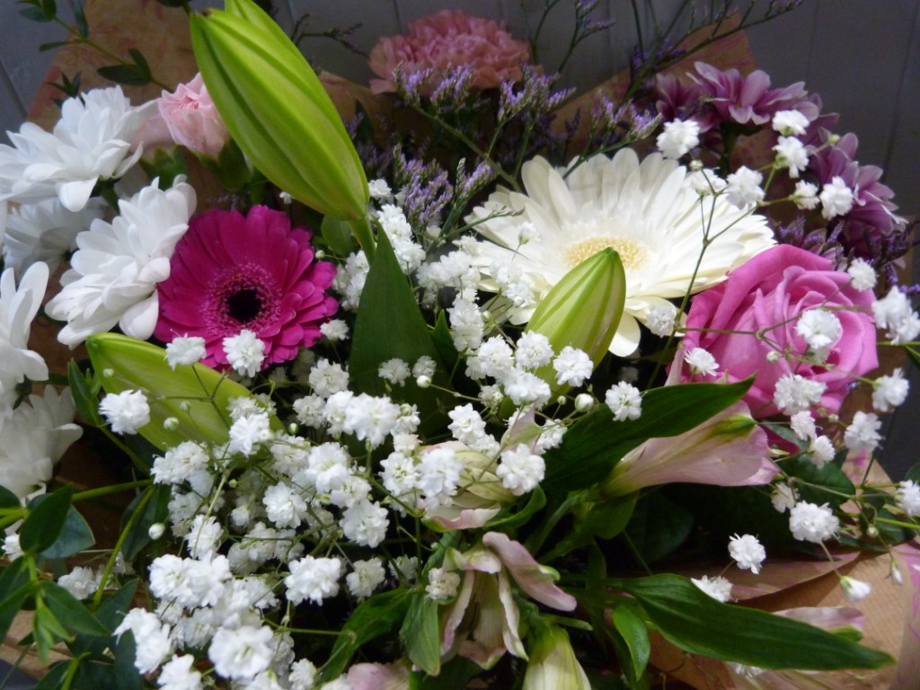 A tied bouquet of mixed seasonal flowers handpicked by our Florist for you. Your bouquet will be simply wrapped into kraft paper finished with a raffia bow. Florist choice of content